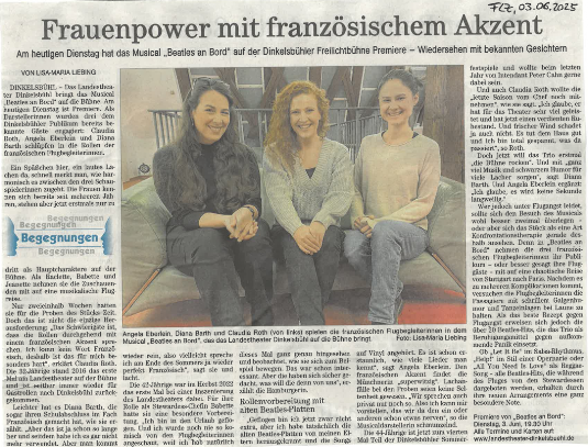 "Diana Barth als Frida und Angela Isabelle Eberlein, als Agnetha glänzen mit ihren starken Stimmen und ihrer Ausdruckskraft.